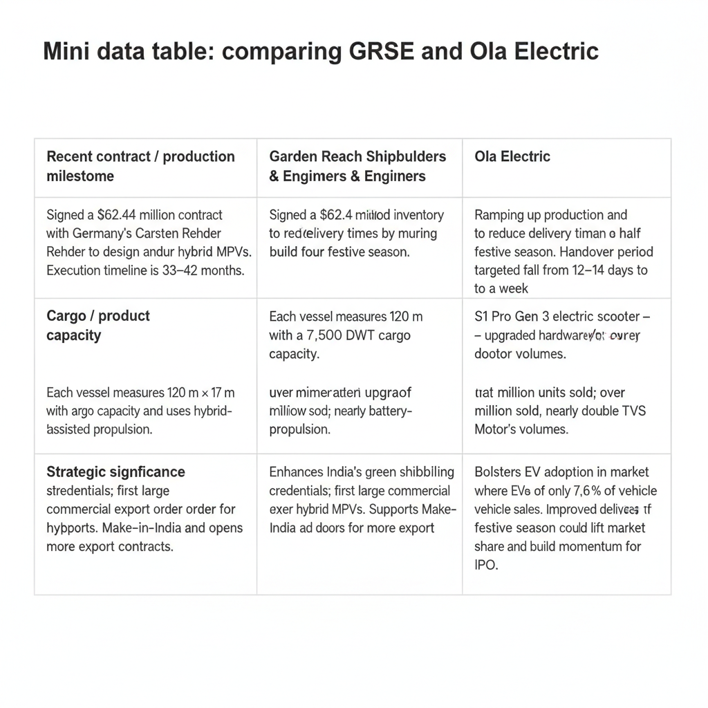The twin worlds of defence shipbuilding and electric mobility rarely intersect, but two Indian pioneers – Garden Reach Shipbuilders & Engineers Ltd (GRSE) and Ola Electric – are demonstrating how Make‑in‑India champions can power very different, but equally important, frontiers. Over the last week GRSE announced a significant export contract for hybrid multi‑purpose vessels (MPVs) and Ola Electric revealed an aggressive production ramp‑up ahead of the festive buying season. Together, these updates underline the vitality of India’s defence industrial base and the growing momentum in the electric two‑wheeler market.