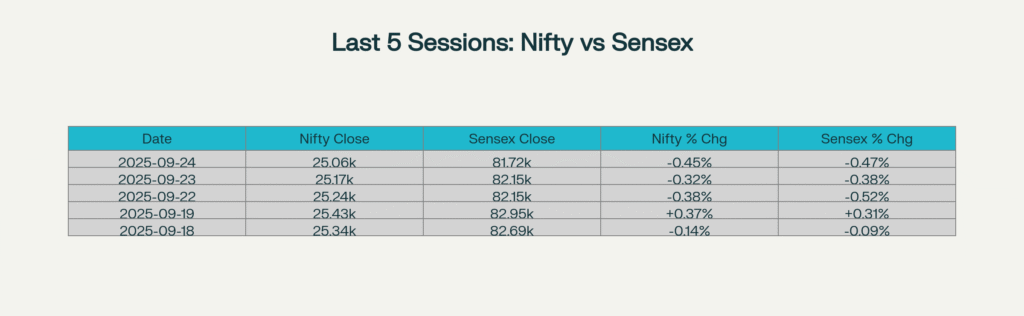 Mini Data Table: Nifty 50 vs Sensex Last 5 Sessions Performance
