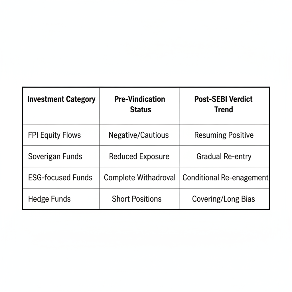 Emerging market focused funds have been particularly active, recognizing the infrastructure and renewable energy growth potential that Adani Group represents in the Indian market context. The Adani Group vindication SEBI has removed a significant risk premium that international investors had factored into their valuation models.