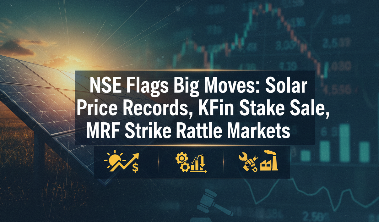 NSE Flags Big Moves: Solar Price Records, KFin Stake Sale, MRF Strike Rattle Markets