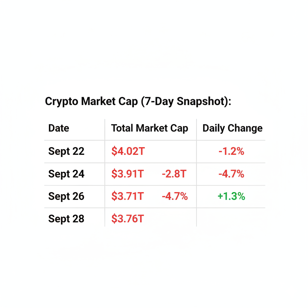 The total cryptocurrency market capitalization plummeted from over $4 trillion earlier in September to approximately $3.71 trillion by September 26, representing a devastating 4.7% single-day decline that erased gains accumulated during the month’s bullish start. According to CoinMarketCap data, the market has shed $162 billion in value, with trading volumes surging to $178.5 billion as panic selling intensified across major exchanges. The selloff accelerated throughout the week, with the market posting consecutive red days that pushed September into negative territory despite early-month optimism.