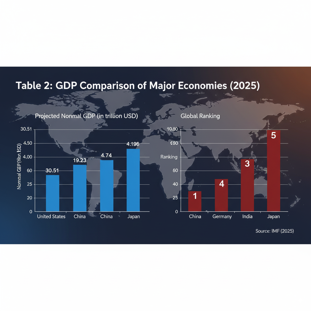 India’s economic performance stands out in comparison to its global peers. The IMF’s projection of India’s 6.2% growth in 2025 is significantly higher than the global growth forecast of 2.8%. While the US and China are expected to remain the world’s top two economies, with projected GDPs of $30.51 trillion and $19.23 trillion, respectively, India is rapidly closing the gap with Germany, which is forecast to have a nominal GDP of $4.74 trillion in 2025.